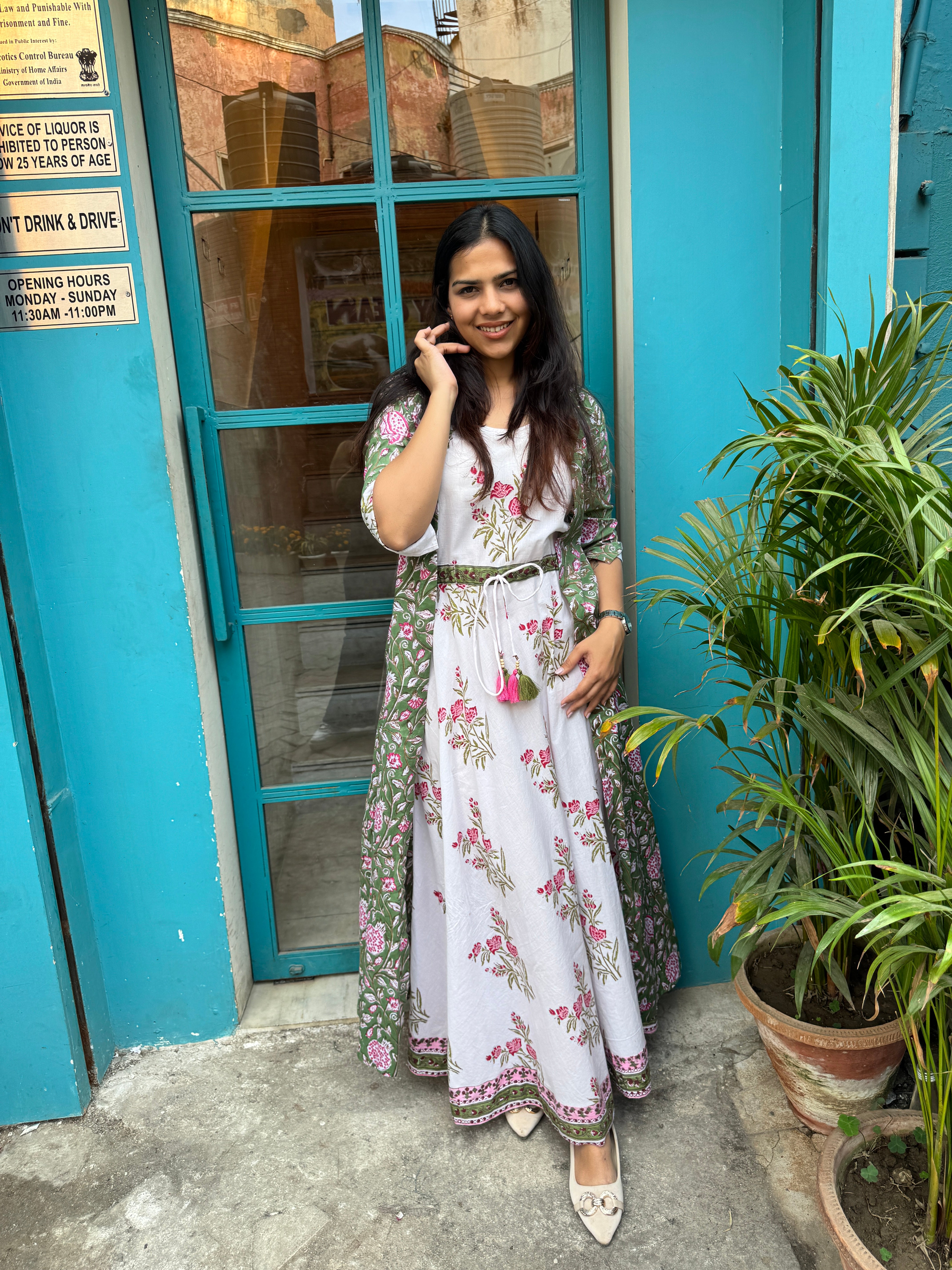Tota Maina Hand Block Printed Long Kaftan Dress