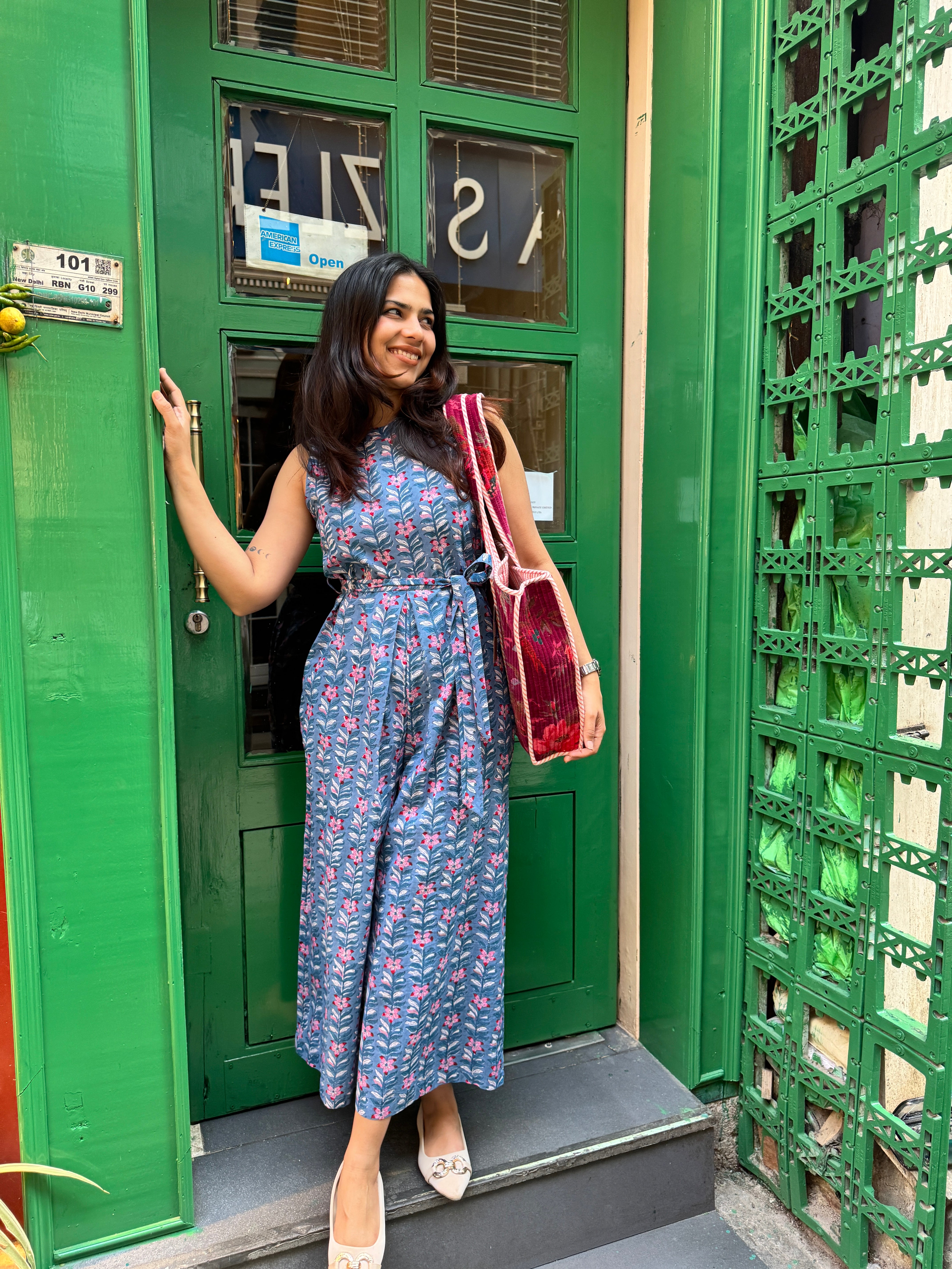 Gulzar Hand Block Print Cotton Midi Kaftan Dress