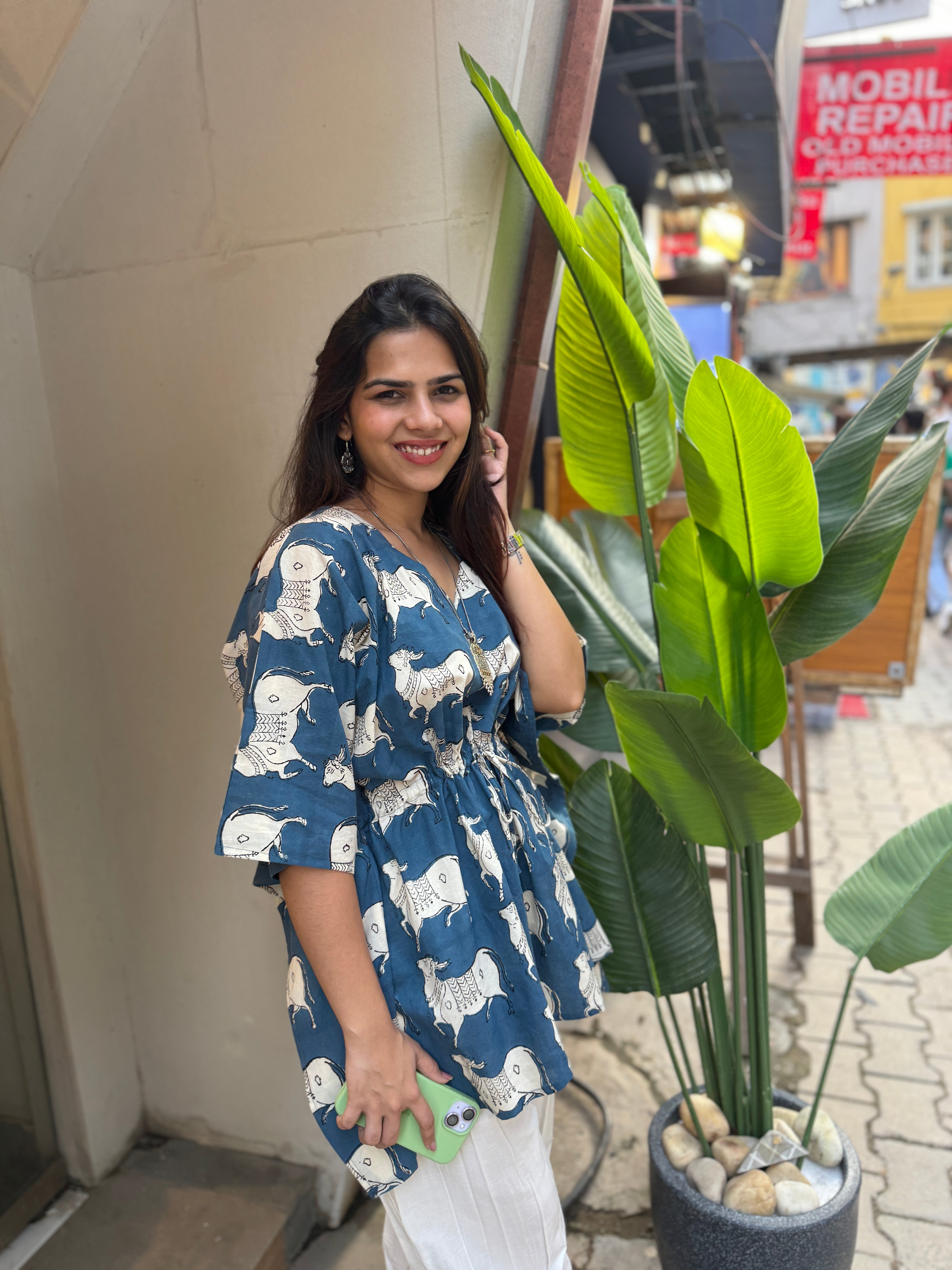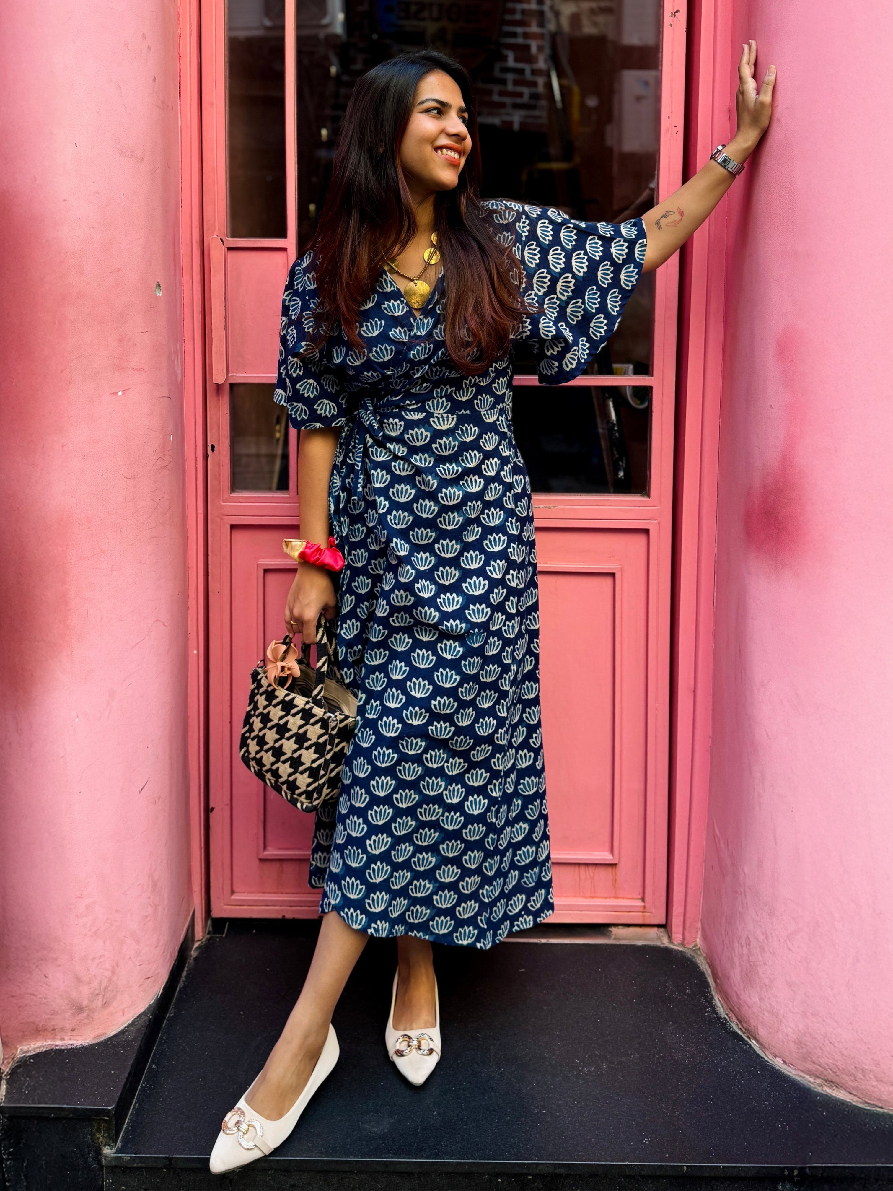 Neel Indigo Hand Block Print Cotton Wrap Around Dress