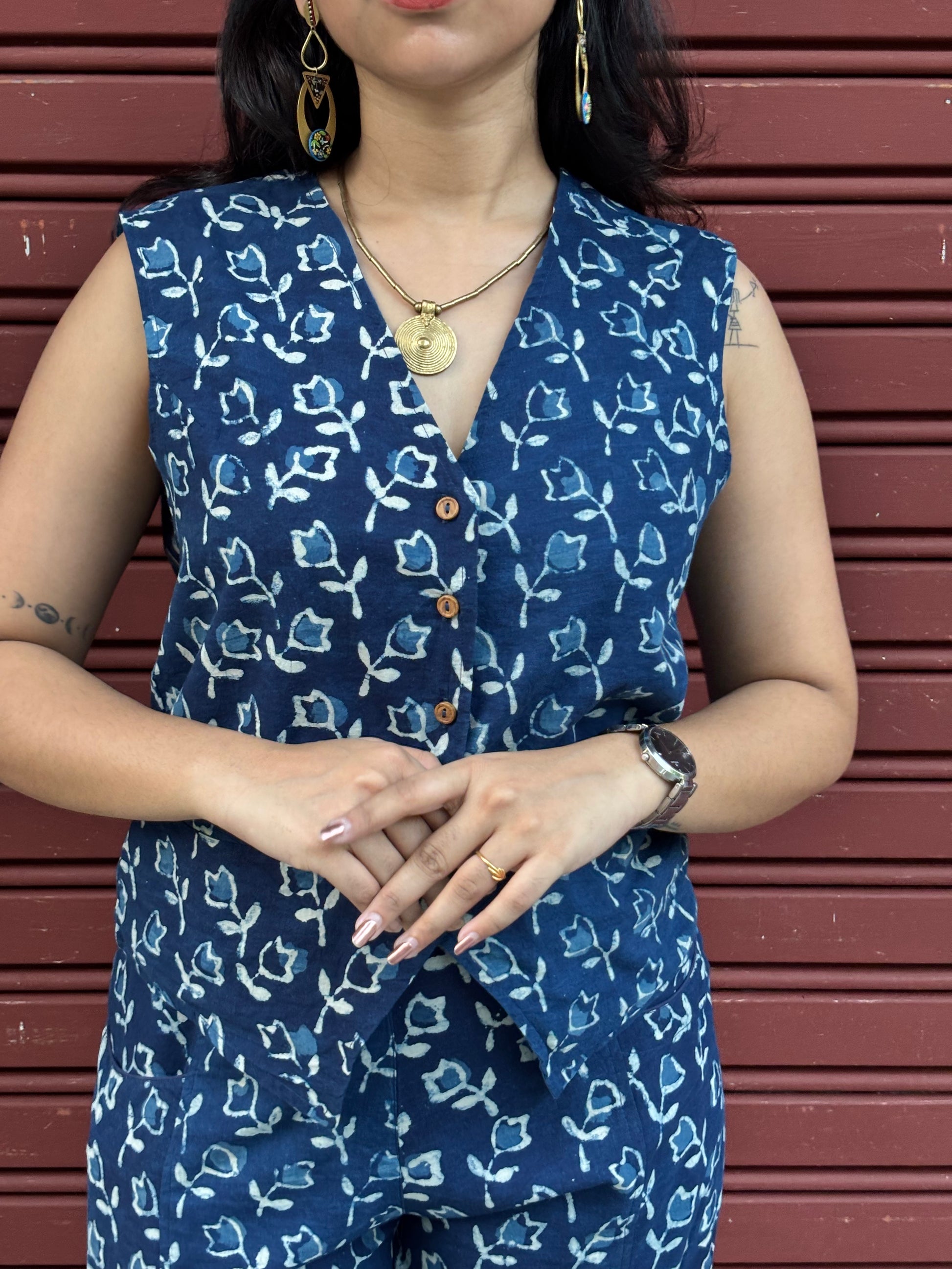 Iyana Indigo Hand Block Print Cotton Co-ord Set