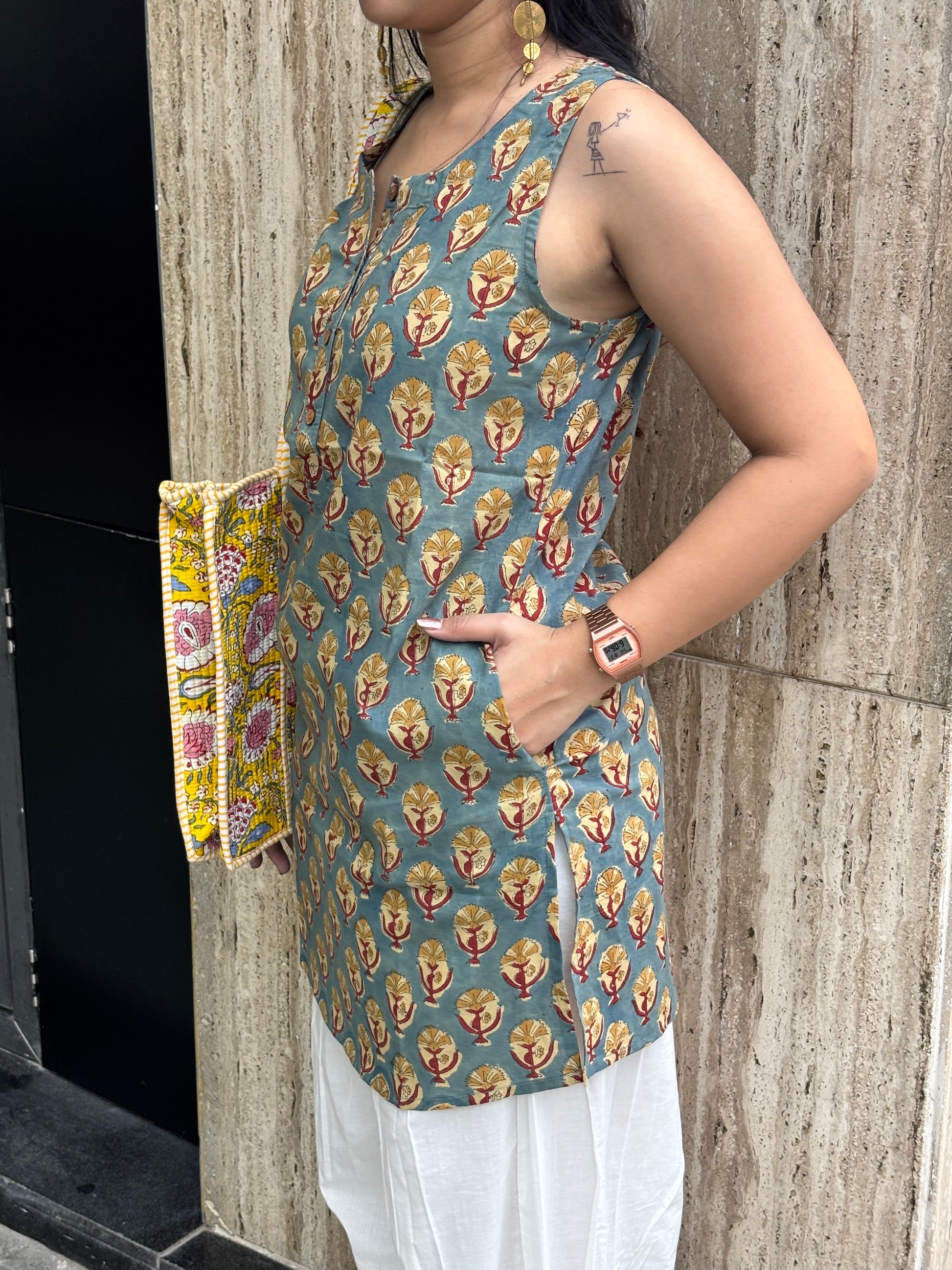 Mishti Bagru Hand Block Print Cotton Sleeveless Kurti
