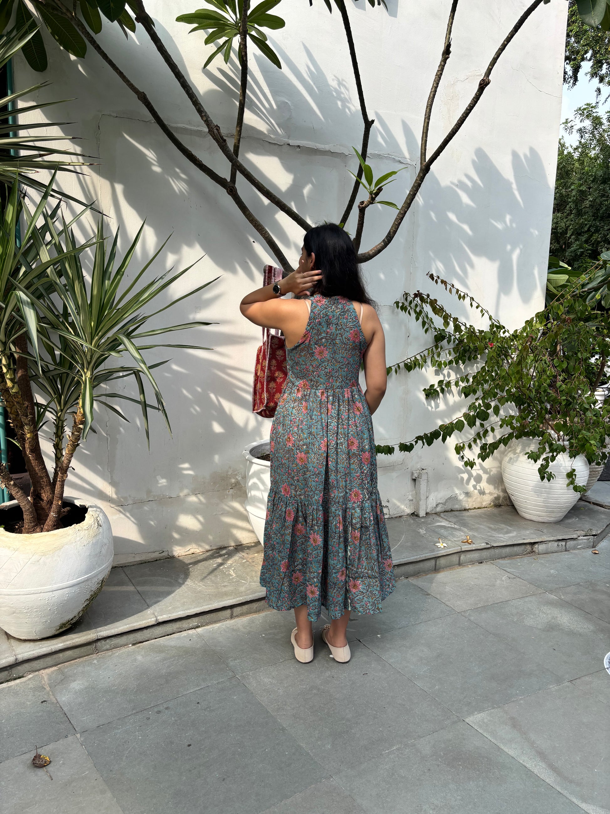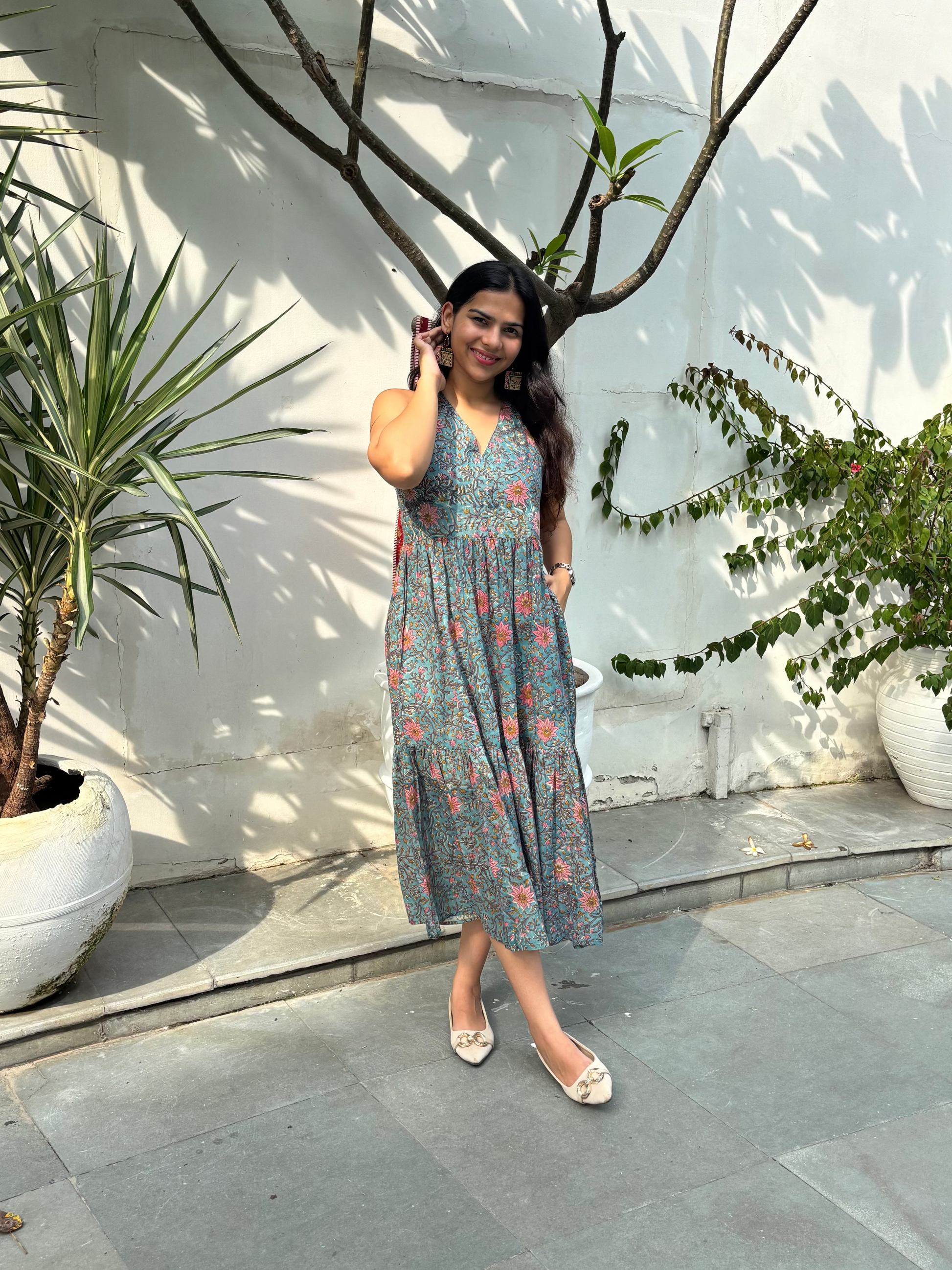 Trusha Hand Block Printed Cotton Halter Neck Dress