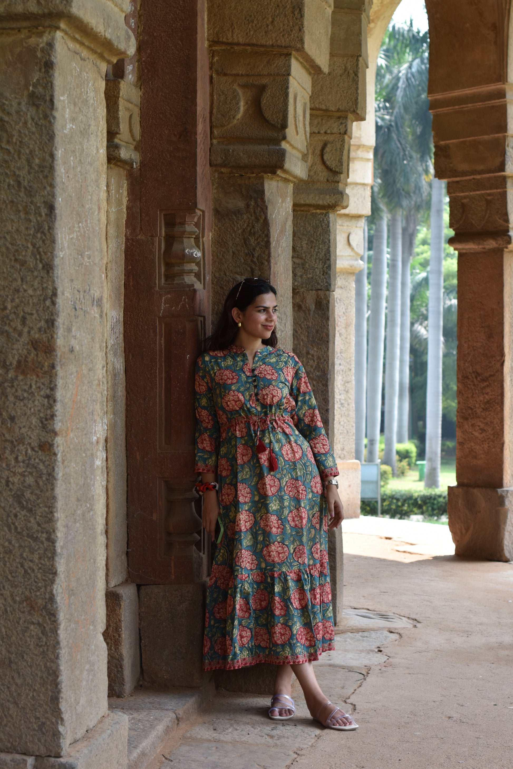 Vanika Block Print Cotton Long A-Line Dress